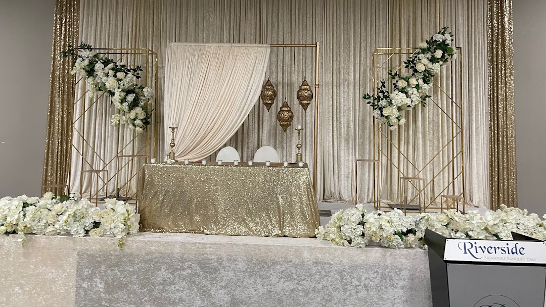 Tema warna putih gold ala bajet.⠀ design pelamin elegent sesuci murni ni boleh je masuk mana mana warna uols.